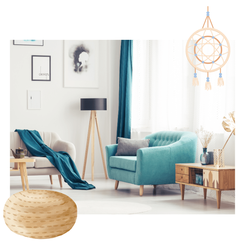 - Bring in natural textures like wood, stone, or rattan.
