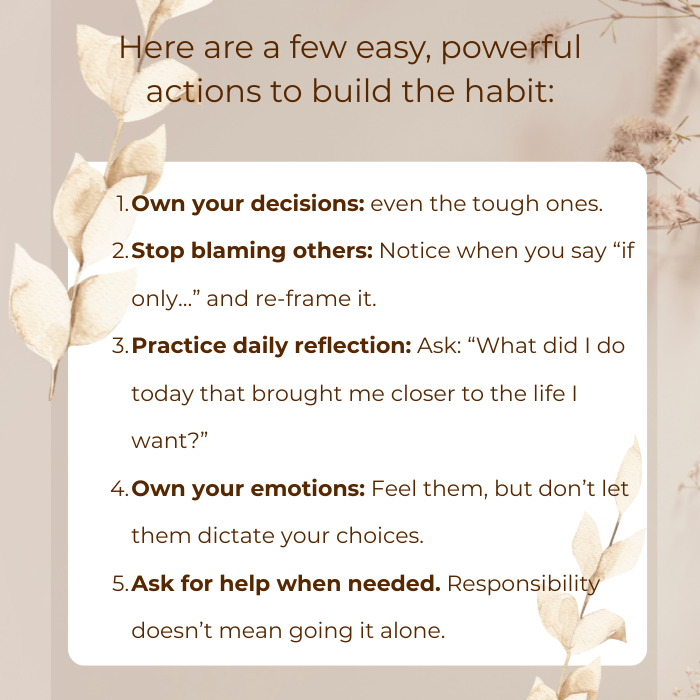 Taking ownership of your life isn’t about blaming yourself for everything. It’s about realizing that you hold the power to shape your response, your growth, and your future. That sound overwhelming at first, but it’s empowering.